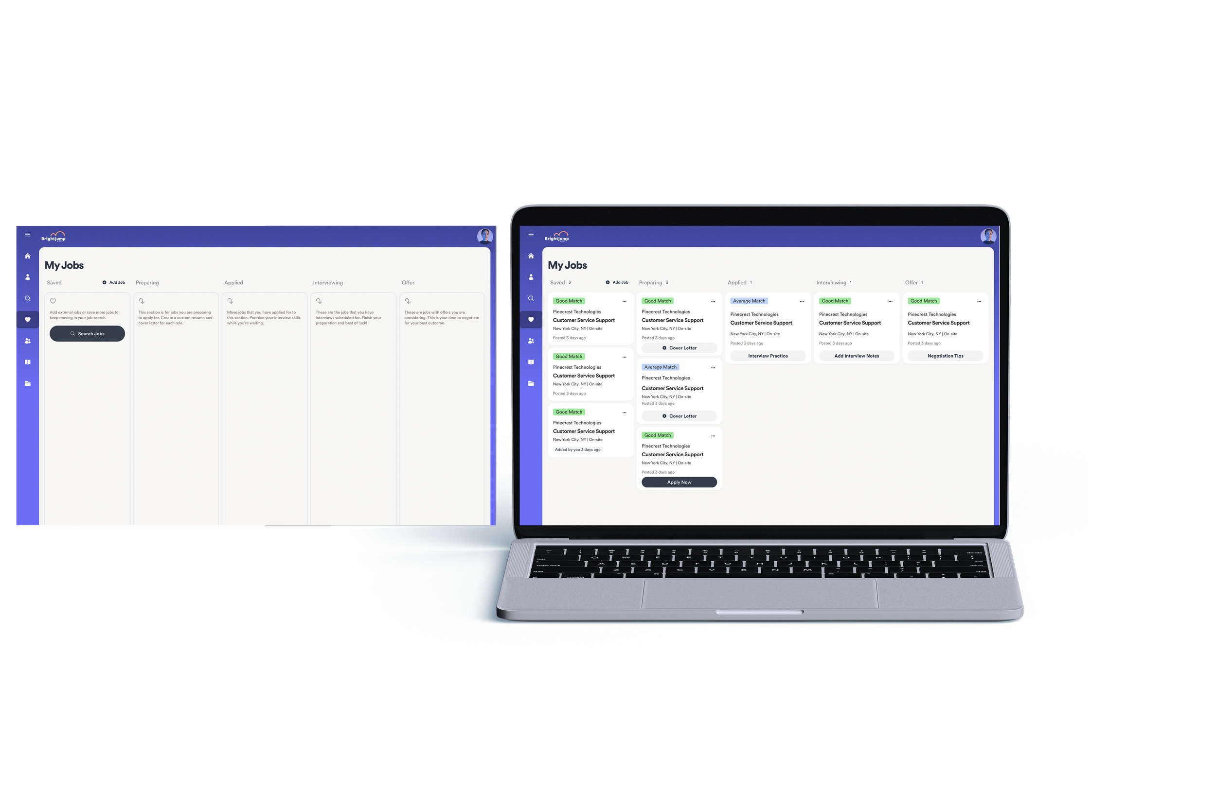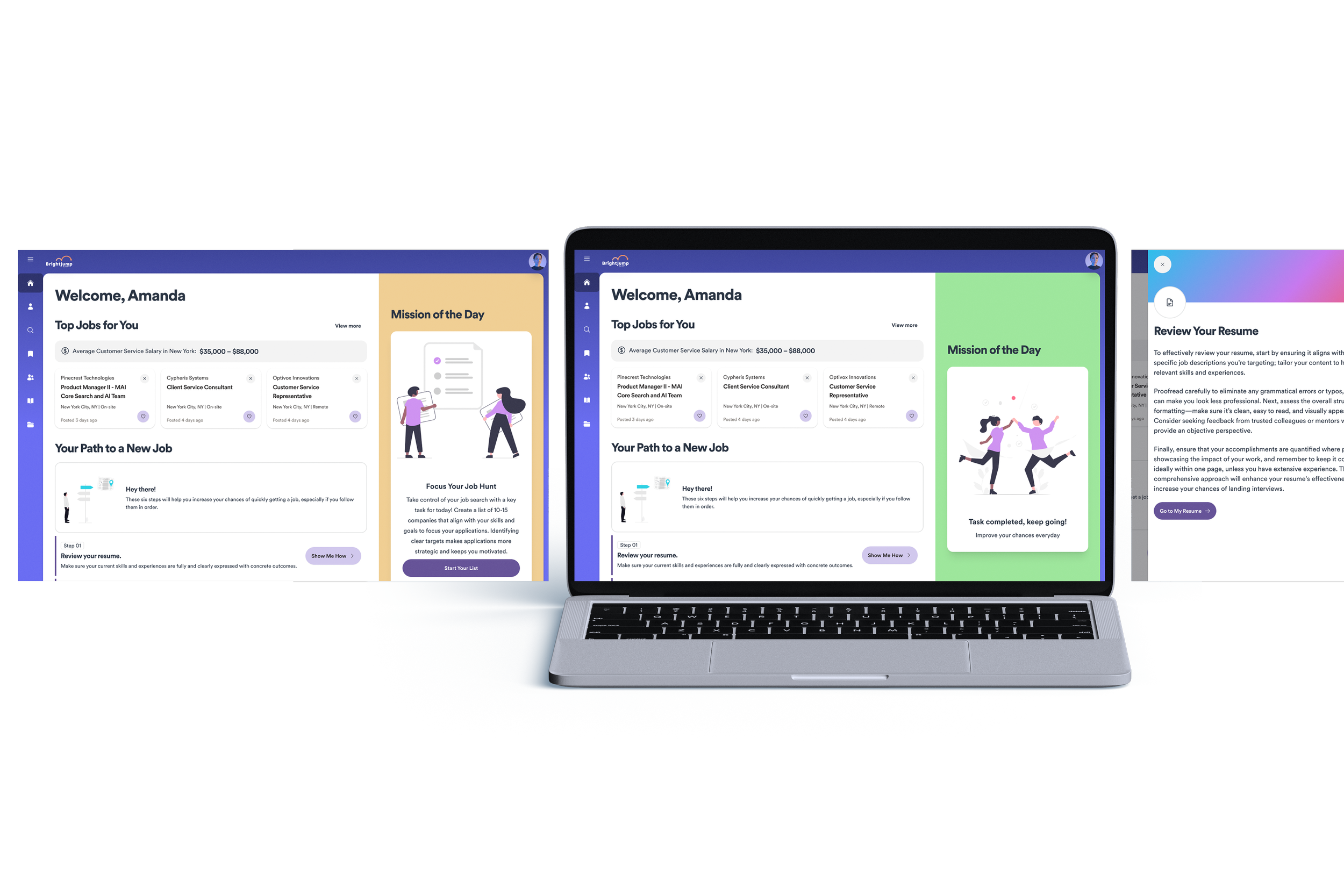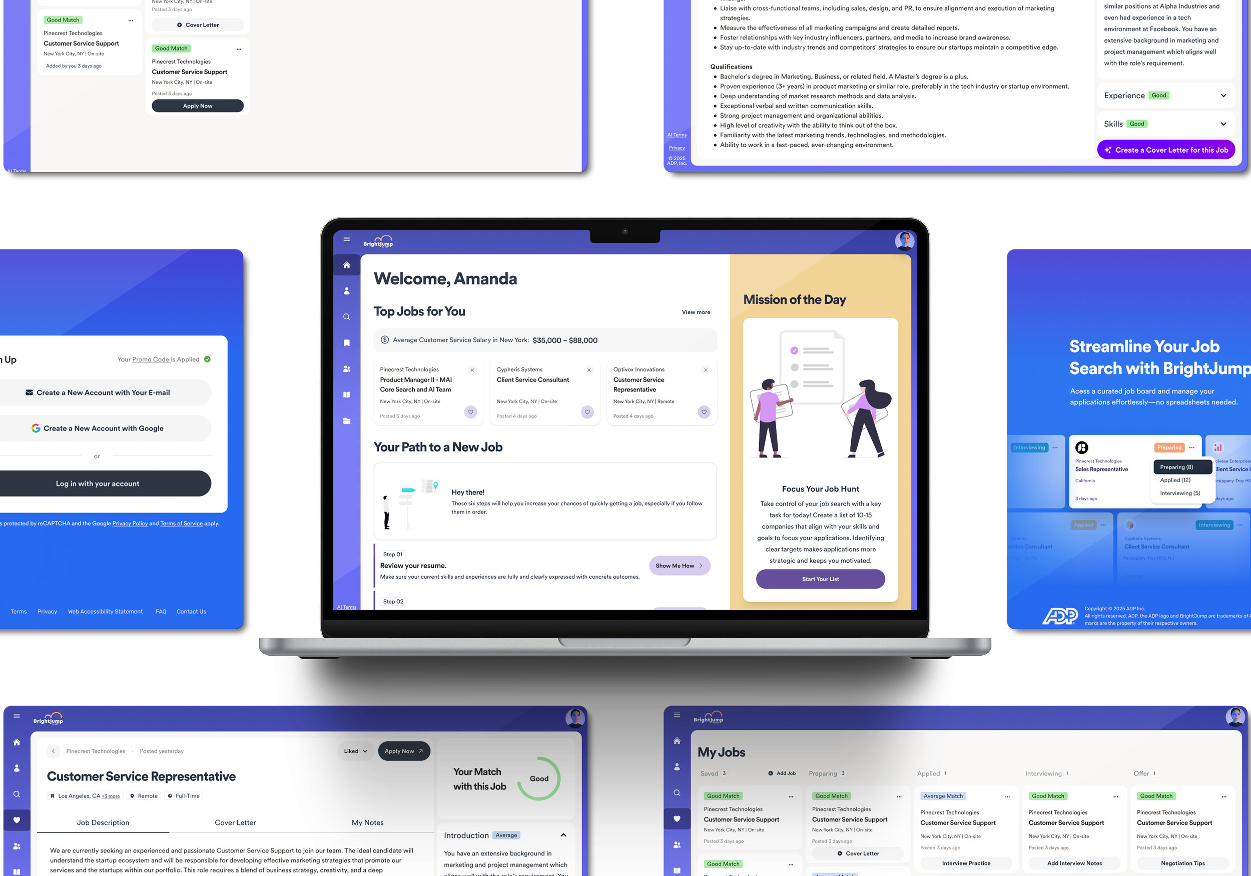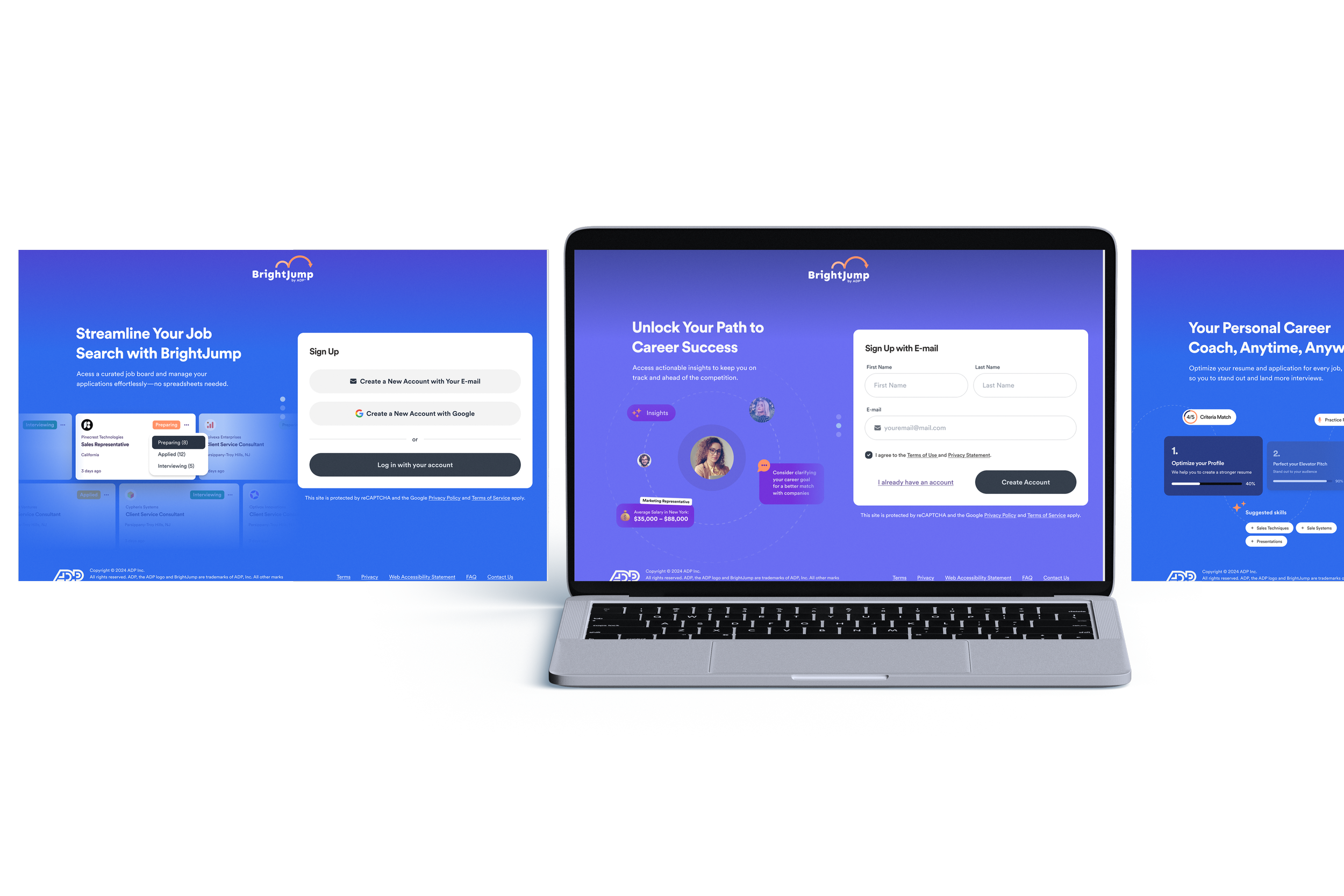 Modernize and enhance BrightJump by ADP, a comprehensive career transition and outplacement platform, to deliver a seamless, AI-powered job search and resume-building experience. The modernization aimed to improve usability, integrate advanced AI features for resume optimization, and expand support for separated employees navigating career transitions.