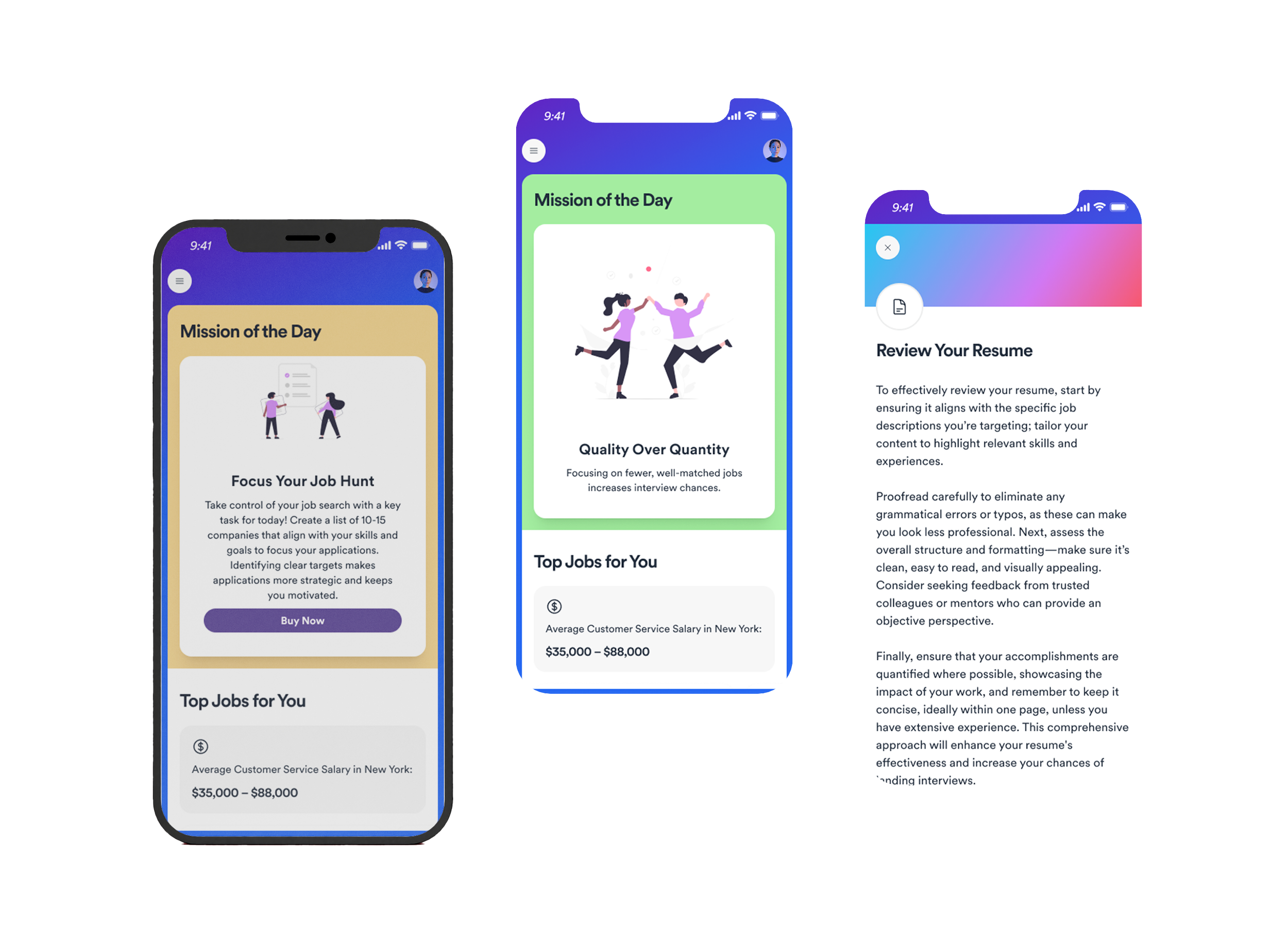 Increased user satisfaction scores and higher resume completion rates.