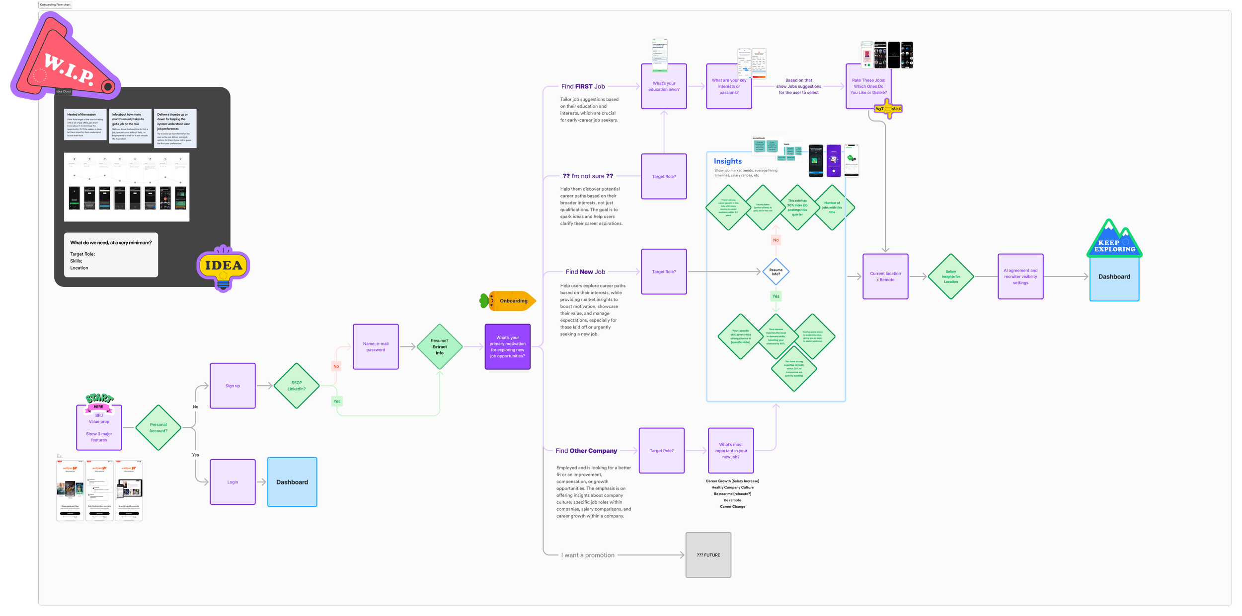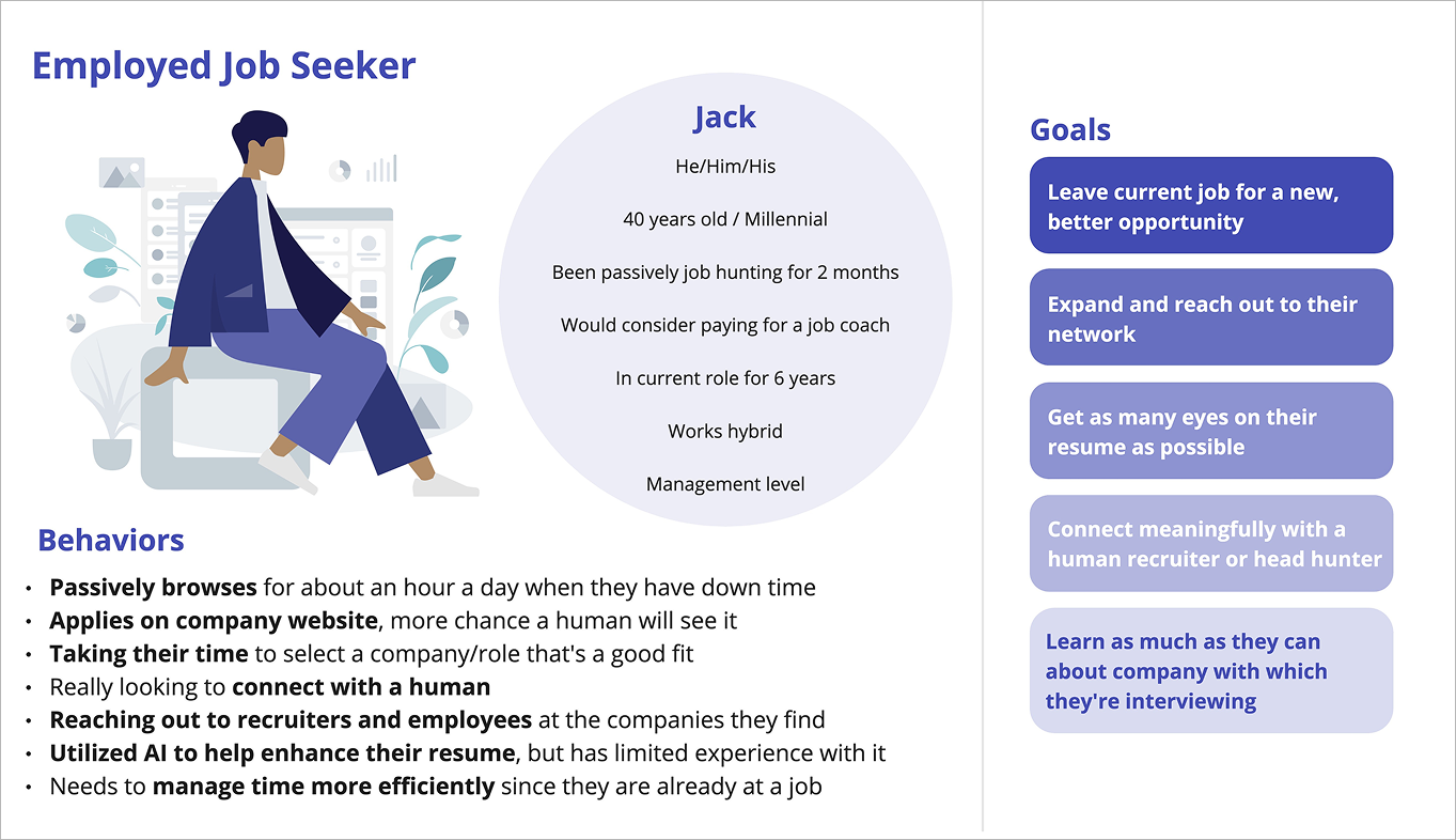 Pain points include anxiety during job transitions and a lack of centralized career resources.