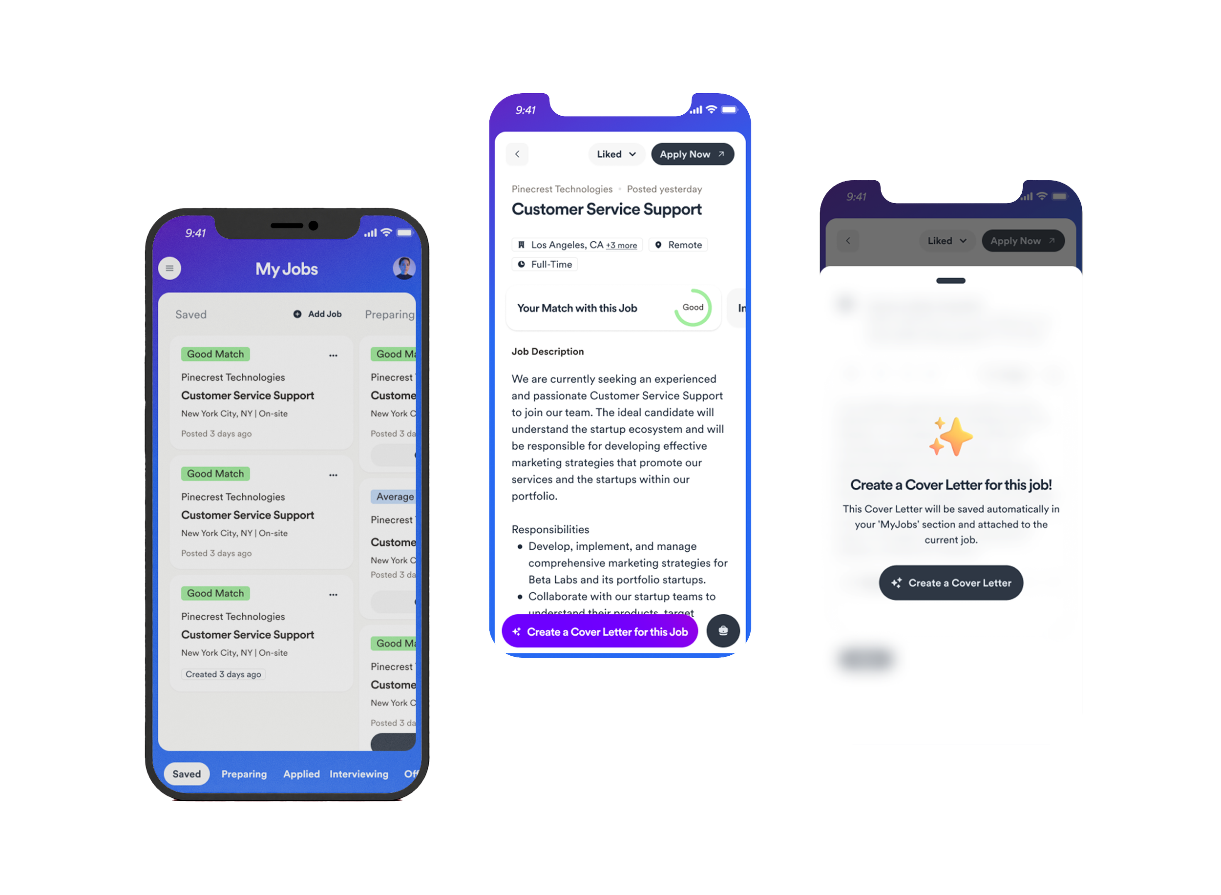 Integrated cover letter generator ensuring keyword consistency with resumes.